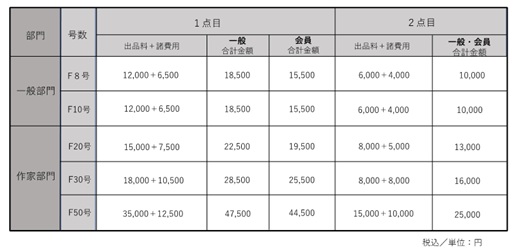 ① 出品料には会場費・審査費用・梱包費用・作品撮影費・図録制作費・その他諸経費を含みます。